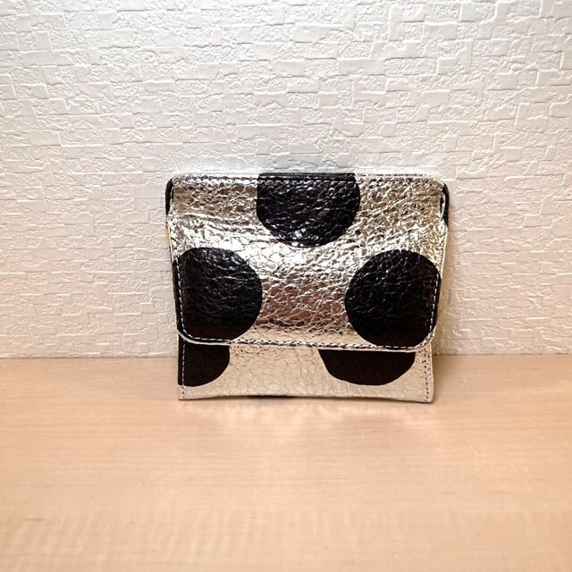 ピッグスキンにシルバーの箔押しドットプリントを施したお財布です。 とても特徴的で可愛らしいお財布です。